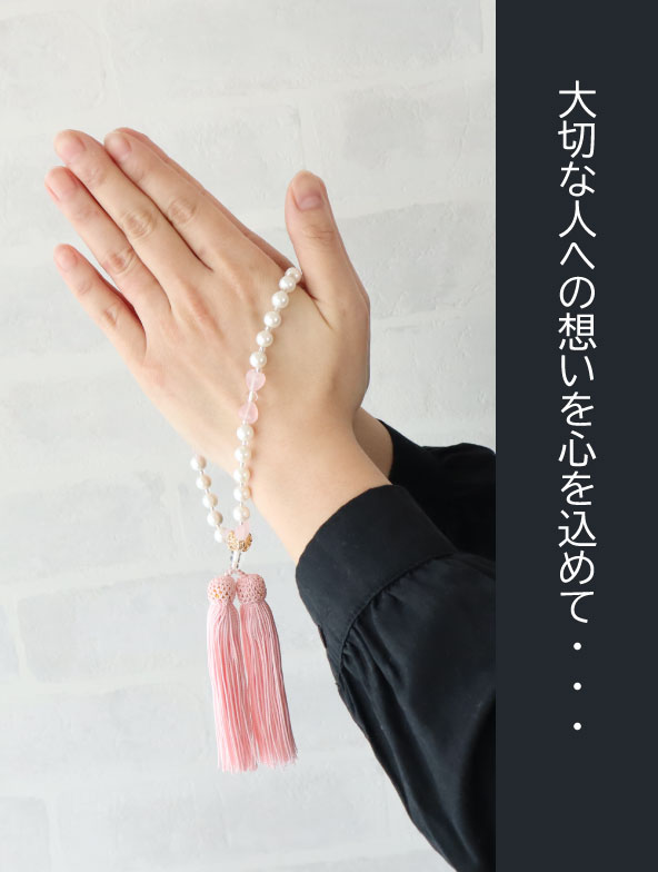 ハート 数珠 念珠 美・パワーストーン 数珠 ローズクォーツ 水晶 数珠 ブレスレット 数珠袋付き 京都 葬式 葬儀 法事 法要