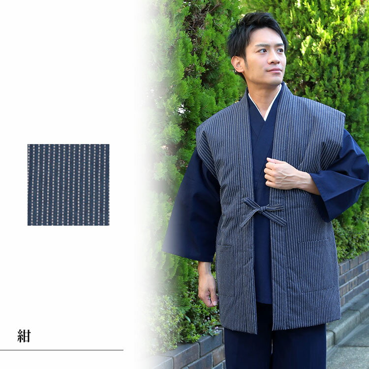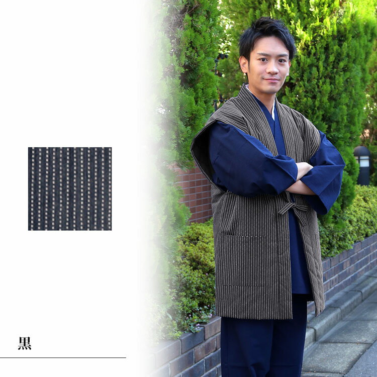 【送料無料】刺子織むら糸染はんてん 袖なし(紺・茶・黒)半天 はんてん 羽織 はおり 上着 うわぎ 和服 男性用 メンズ 大人用