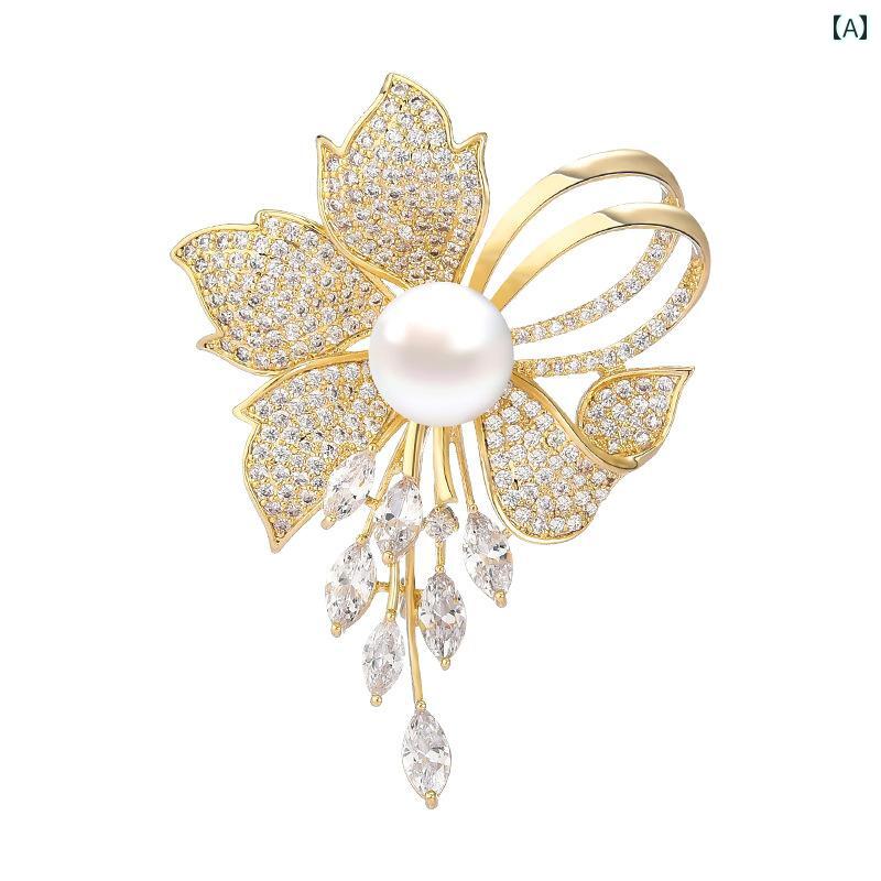 ブローチ セレモニー おしゃれ シェルビーズ られた ゴールド 花 フェミニン 中国 精巧 チャイナ ドレス 装飾 レディース ファッション 装飾品 ジュエリー
