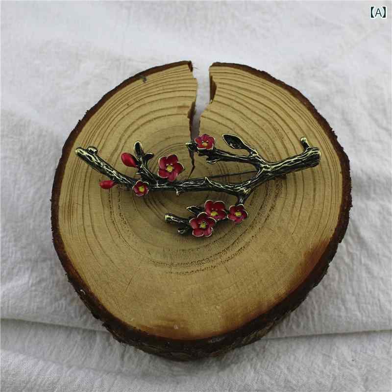 レディース ファッション アクセサリー オールシーズン 装飾 アメリカ レトロ エナメル 梅 コサージュ ブローチ ピン