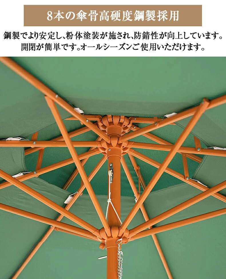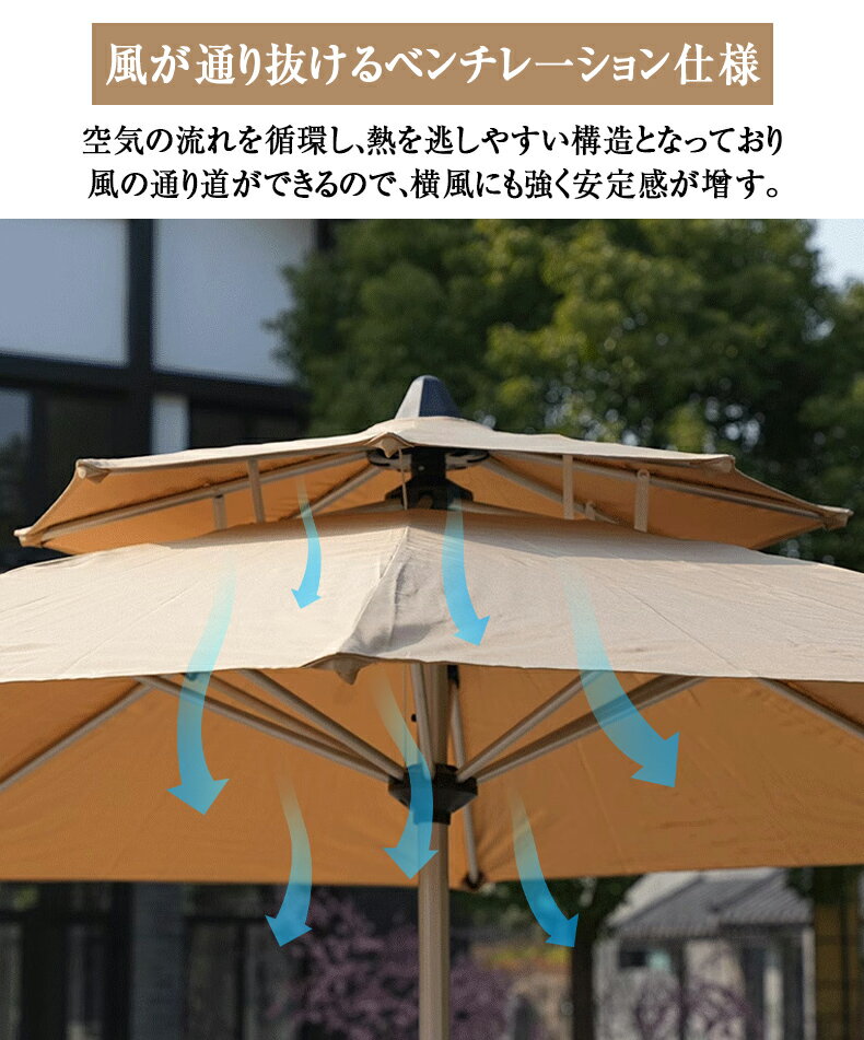 ガーデンパラソル パラソル 風に強い 大型 270cm ハンドル開閉 アルミ製 ワイドパラソル UVカット 撥水加工 折り畳み 軽量 ハンギングパラソル ビーチパラソル 庭 テラス ベランダ オープンカフェ ガーデン