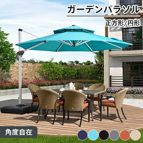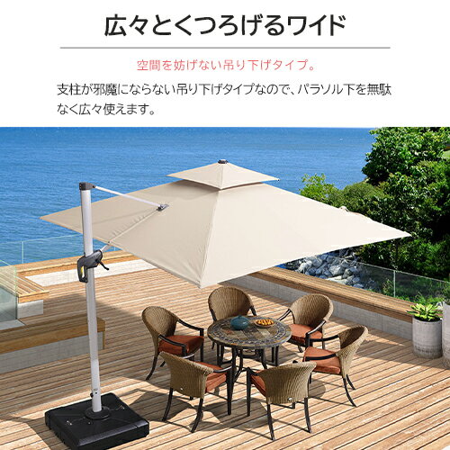 ガーデンパラソルセット 2層式 ベース付き 大型 スタンドタイプ 自立式 LEDソーラーライト 土台付き 角度調整 360°回転 熱中症対策 庭 日よけハンギングパラソル ハンドル開閉 ホテル お庭 テラス アウトドア