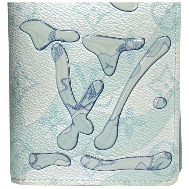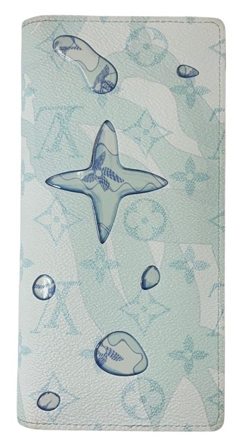 ルイヴィトン ポルトフォイユ ブラザ 長財布 アクアガーデン 二つ折り財布 M82306 ブルー ホワイト モノグラム キャンバス メンズ レディース 小銭入れ付き Louis Vuitton 【中古】