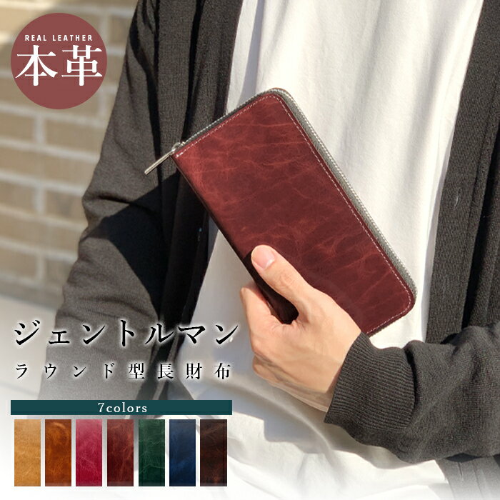 長財布 牛革 ヌメ革 ジェントルマン ラウンドファスナー サイフ さいふ ウォレット 小銭入れ レザー 本革 革 ファスナー付き おしゃれ 花柄 カード入れ ラウンド財布 ラウンド型 長サイフ 本革長財布 メンズ ペア ギフト プレゼント 日本製