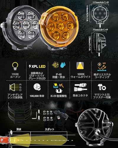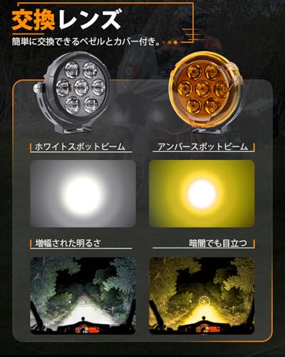 BraveWAY オートバイ LED ドライビングフォグライト 4.5 インチ 140W 15530LM ホワイト/イエロー スポットライト 補助オフロードディッチライト アンバーカバー取付ブラケット付き アドベンチャー クルージング ツーリング バイク用
