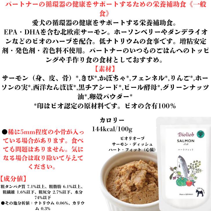 ビオリオーブ サーモン ディッシュ ハートフィット 心臓 120g 6袋セット 犬用 正規品 おやつ ごはん ウェットフード トッピング ペットフード ドッグフード 保存料 香料 無添加 栄養 ヒューマングレード 健康的 低ナトリウム 心臓 血管 健康維持 健康サポート Bioliob