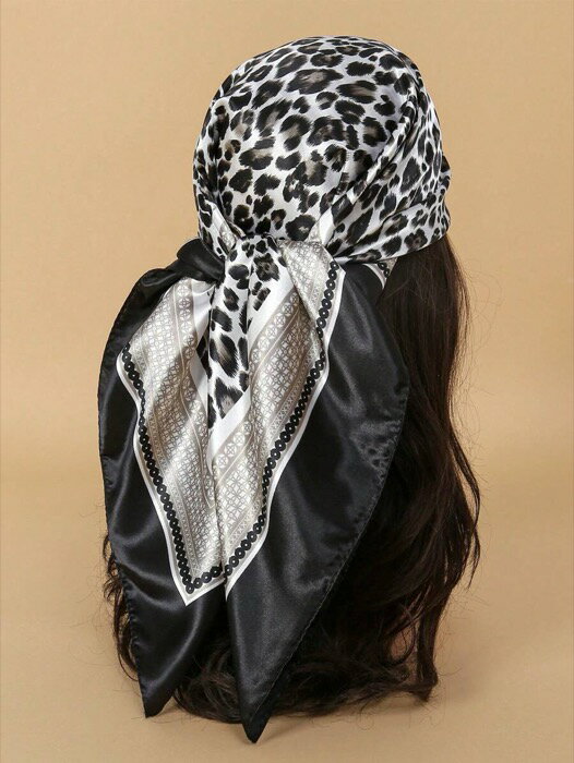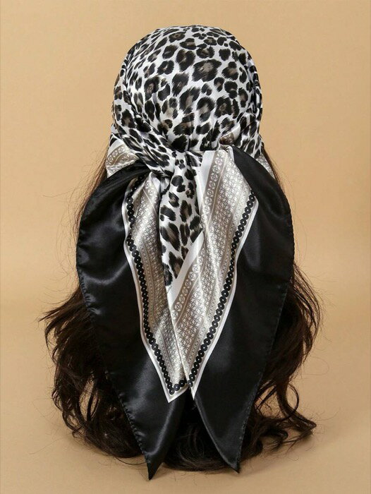 [ 8日から12日程度でお届け予定 ] アクセサリー レディース スカーフ 1枚 レディース レトロ ブラック&ホワイト レオパード柄バンダナ ヘッドスカーフ、デイリーウェア、ビーチホリデーに適しています