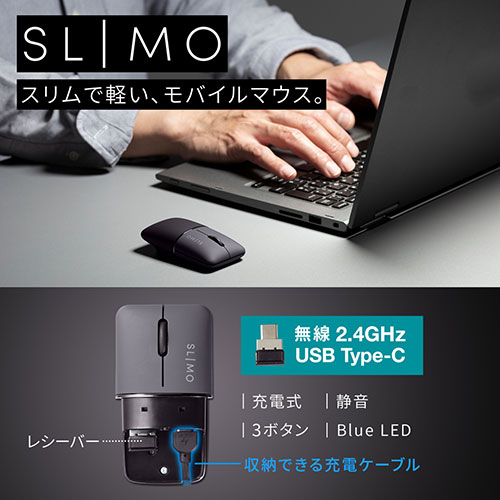 情報 周辺 機器 パーツ ケース スタンド アクセサリー 部品 マウス パット WEB デジタル関連 | サンワサプライ 静音ワイヤレスブルーLEDマウス SLIMO 充電式 Type-C MA-WCBS310BK