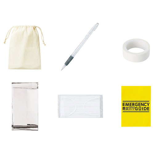 防災緊急6点セット 巾着タイプ 約175×240mm・マスク・アルミブランケット・マスキングテープ・スカッシュボールペン・防災ガイド 22556702 アウトドア キャンプ レジャー 災害 防災 地震 | 関連単語 虫 害鳥 害獣 便利 グッズ 防虫 非常 旅行 トラベル 持出袋