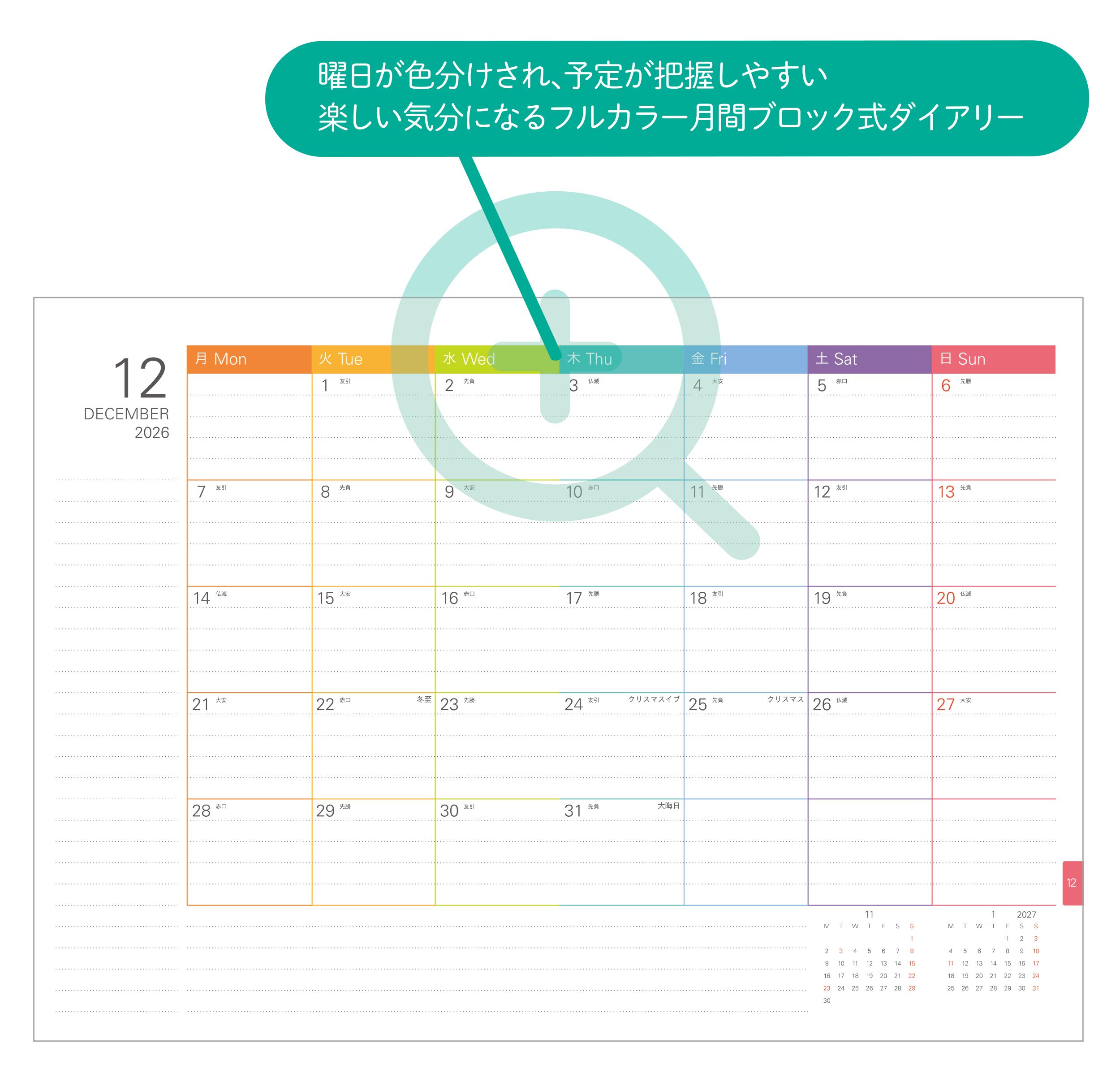 レイメイ藤井 26システムノートダイアリー ブロックカラーA5 RFDR2662 マンスリー 月間 ブロック 2025年12月〜2027年3月