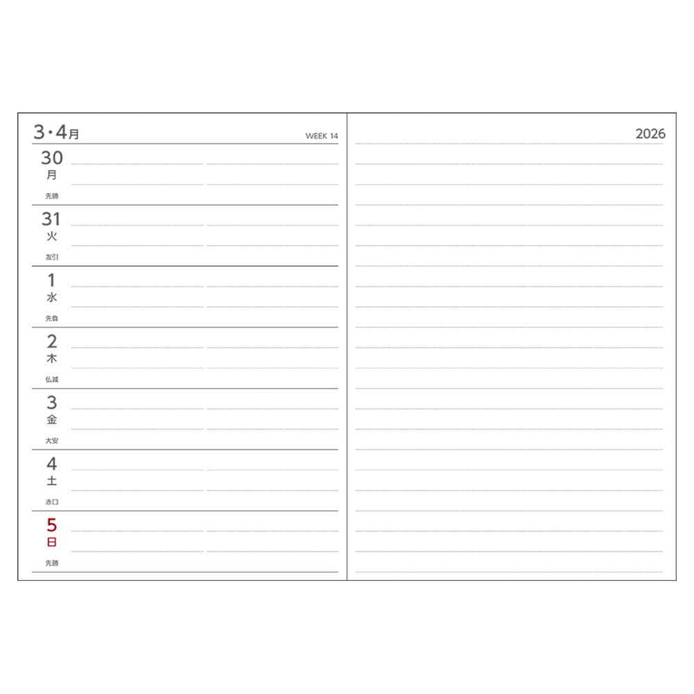ダイゴー 2026 アポイント 文字大 A5 1W+横罫 ネイビー E8324 A5 ウィークリー 2025年12月〜2026年12月
