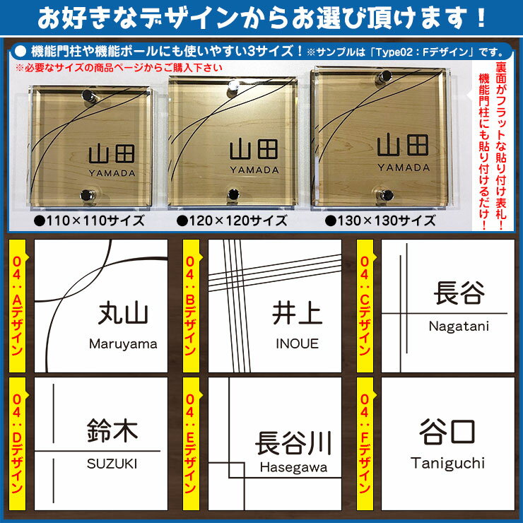 【安心保証付】【周年記念特価 ポイント5倍】二層板表札 クリスタル Type04:2点ビス仕様【サイズ:120×120mm】 イメージ画像:Fデザイン(5木目コナ) YKKap ルシアスポストユニット 三協アルミ ステイム 機能門柱 機能ポールにも取付可能 貼付け 表札