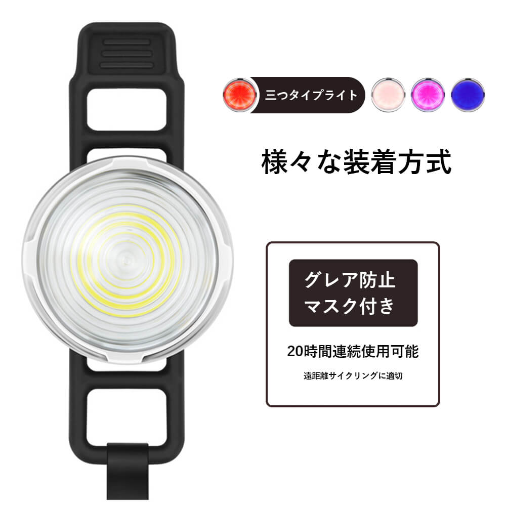 【P5倍】着装可能 自転車ライト ライト リア用 セーフティライト USB充電 サイクリングウォーニングランプ ヘルメットランプ グレア防止 IPX6級 防水 赤白青ライト 20時間連続使用可能 グレア防止デザイン 丸いCOB充電テールランプ ロードバイク クロスバイク