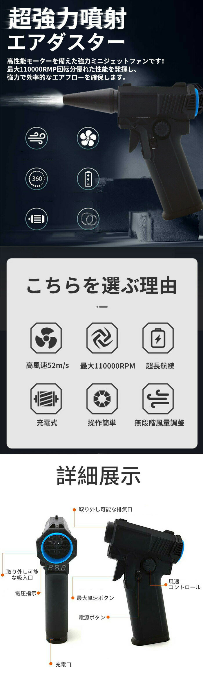夏の対策! 洗車 ミニジェットファン ハイパワー 強力扇風機 電動送風機 ターボジェットファン エアダスター ペットドライヤー 110000RPM 52M/S 8000mAh 送風機 ブロアー 小型 ジェットブロワー エアダスター 除雪 除塵 電動