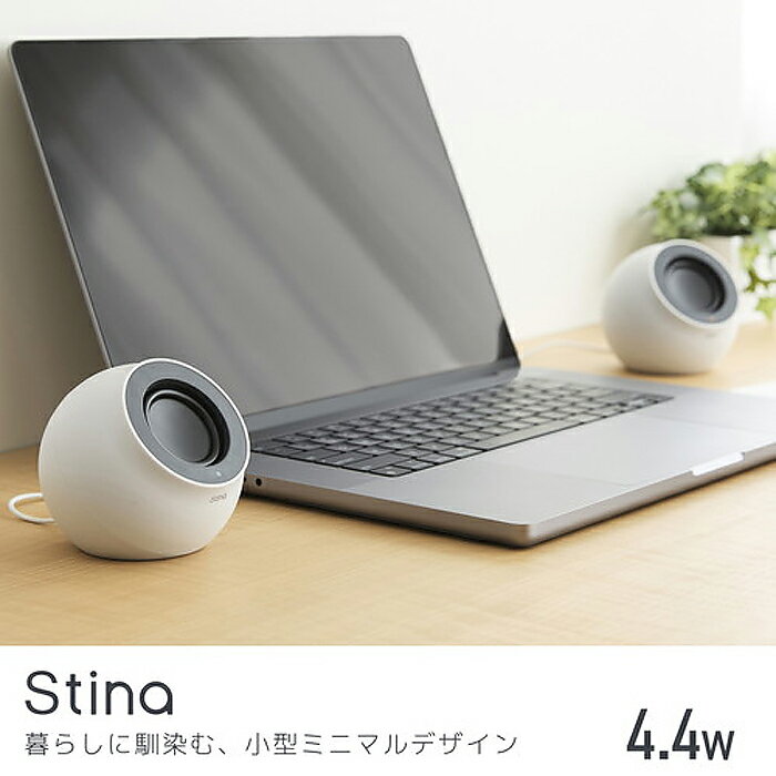 PCスピーカー Stina(スティーナ) (ホワイト)/有線((音声3.5mm) 電源(USB Type-C 接続)) 4.4W(2.2W+2.2W) エレコム SP-P10CUWH
