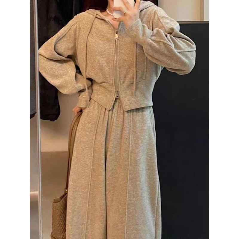 スウェット レディース 春 中華風 セットアップ パーカー ワイドレッグパンツ 2点セット 無地 カジュアル 通勤 ポリエステル