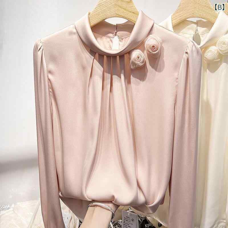 シャツ レディース 長袖 花柄 立襟 接触冷感 絹 上質 ミルクホワイト ピンク系 グリーン系 オフィスカジュアル 通勤(x3)