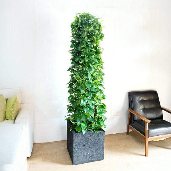 観葉植物 大型 法人様送料無料 ポトス 特大 タワー仕立て 10号 キューブ型 デザイナーズ 高級鉢カバー付 ブラック プレミアム おしゃれ 尺鉢 大鉢 10号鉢 大サイズ 大きいサイズ インテリア 鉢カバー付き