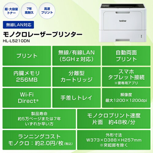 ブラザー brother JUSTIO ジャスティオ HL-L5210DN モノクロレーザープリンター A4/USB/LAN HLL5210DN