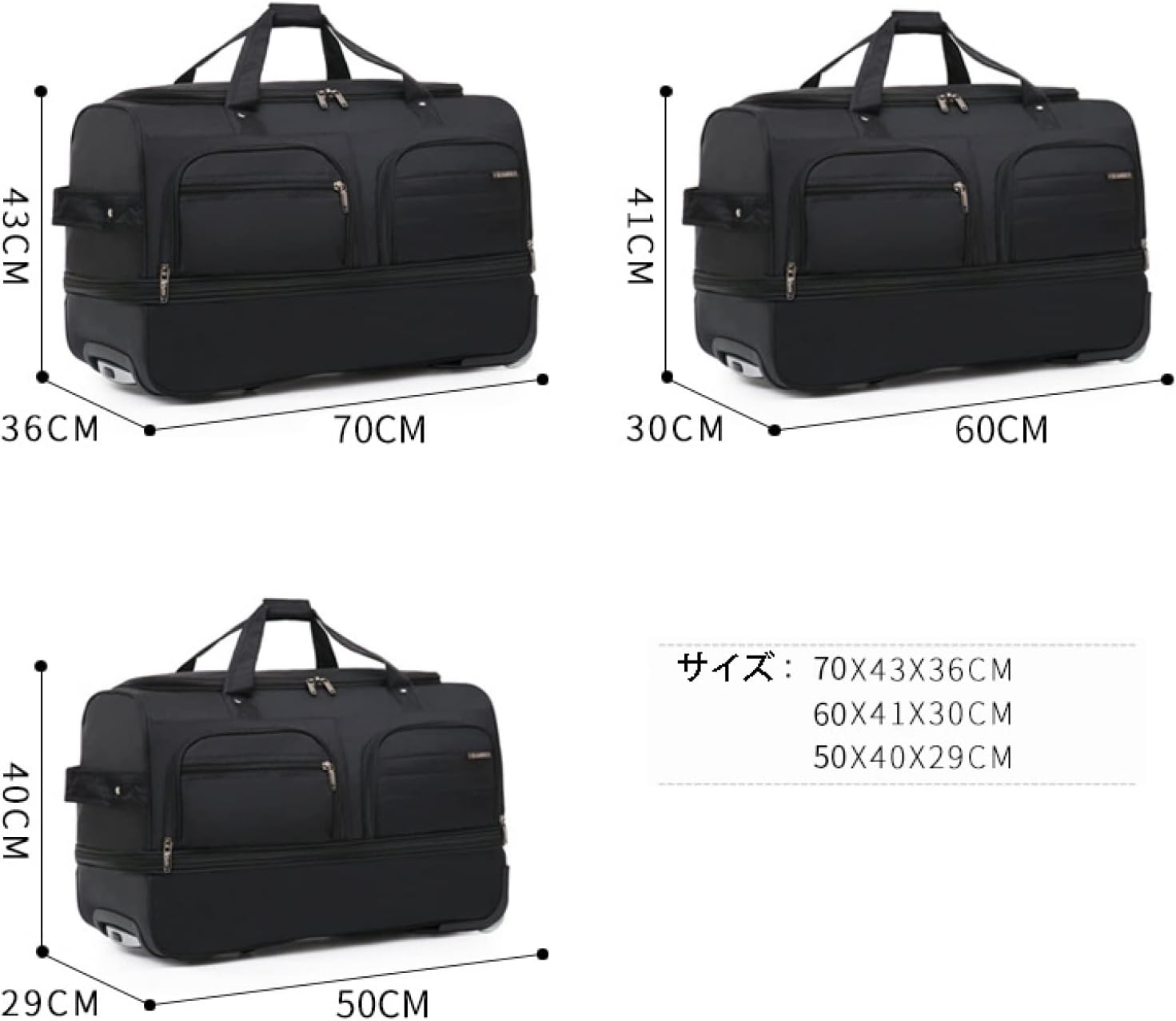 ボストンキャリー 2way キャスターバッグ 55L キャリーバッグ 折りたたみ 大容量 3輪 撥水加工 拡張可能 トロリーバッグ メンズ レディース 旅行 合宿 出張 引っ越し 旅行バッグ スーツケ