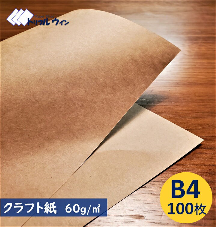 クラフト紙 B4 60g 100枚入 ハトロン判換算65kg 厚みは一般的なコピー用紙程度かそれよりも少し厚めです。 ※エコ配選択時は時間指定不可です※