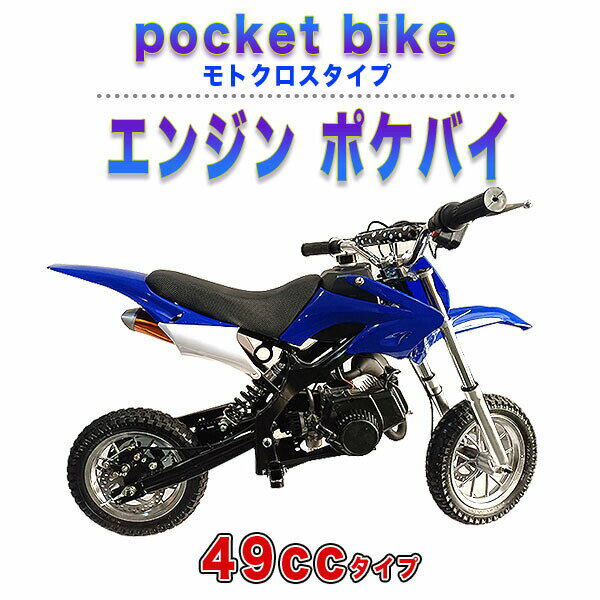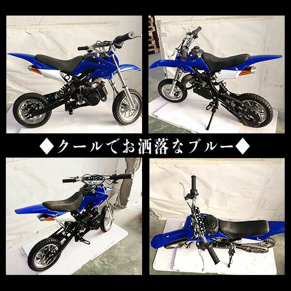 ポケバイ 49cc モトクロス エンジン ポケットバイク 本体 2ストエンジン ブレーキ ミニ バイク 原付 車体 乗用 乗れる 乗用玩具 コンパクト モタード オブジェ インテリア 青 ブルー