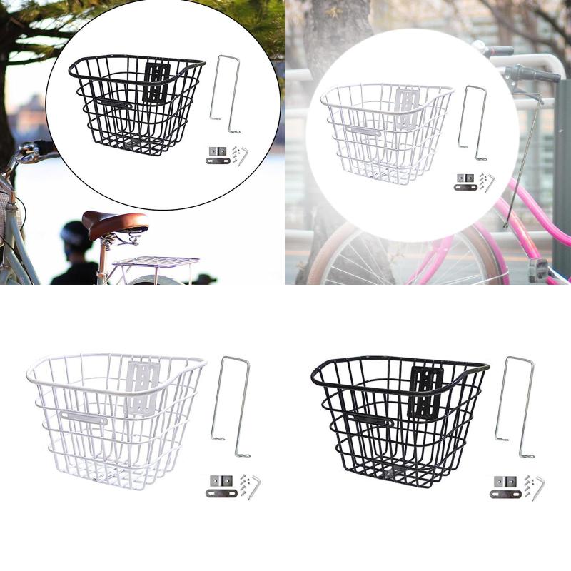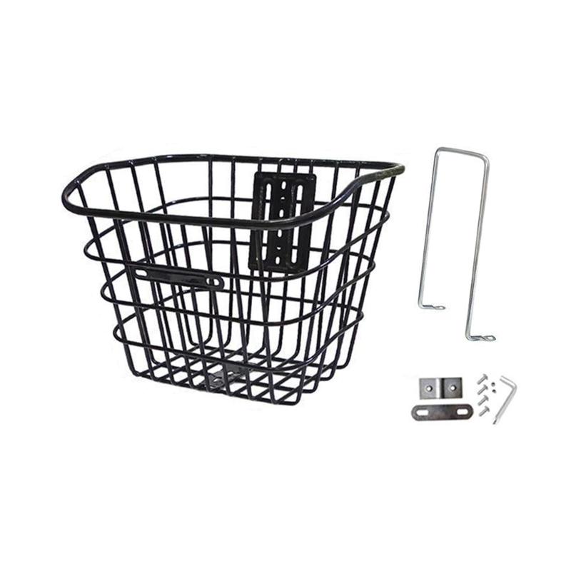 電動自転車用フロントバスケット ブラケット付き 多機能アクセサリー 簡単な組み立て 13.4x10.6x10.2インチ 金属製カーゴバスケット オープントップ