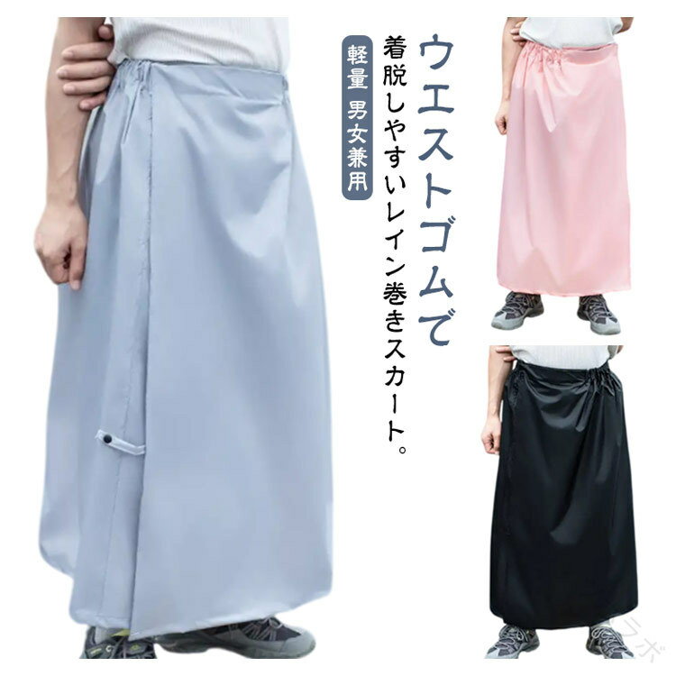 レインスカート レインウェア 巻きスカート ラップスカート 男女兼用 ユニセックス レディース メンズ カッパ 防水 軽量 ワンタッチ簡単装着 通勤 通学 自転車 原付バイク用 ロンジースカート ブラック ピンク グレー ネイビー