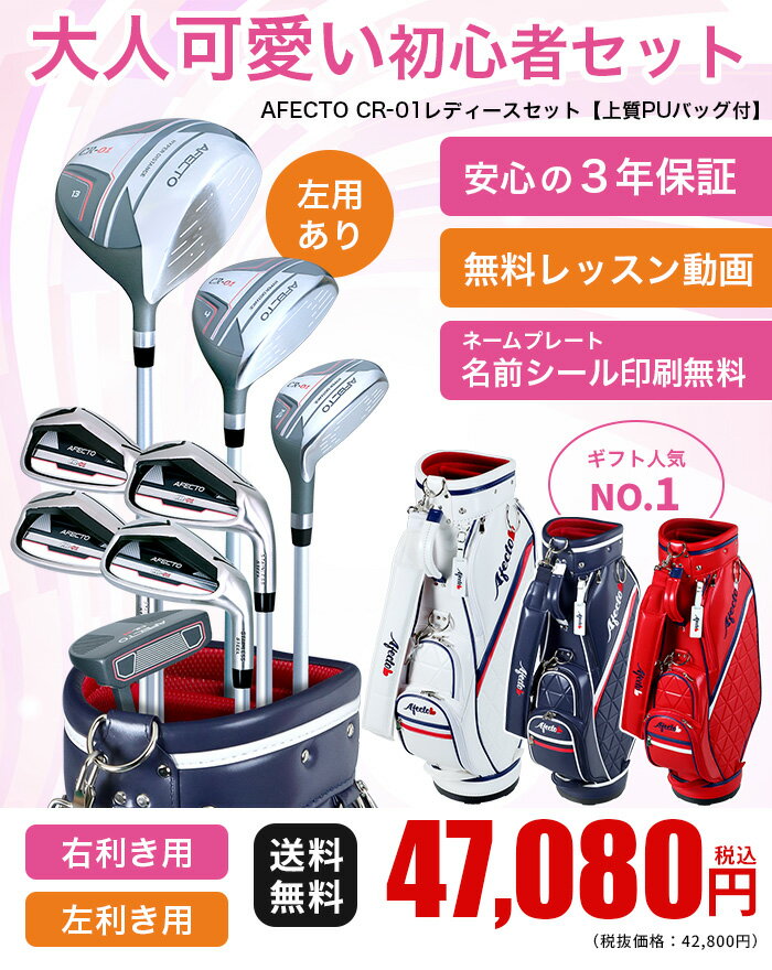 レディースゴルフセット Afecto CR-01 AFCB20-01L 大人かわいい【右用/左用】ゴルフクラブセット8本+キャディバッグ 女性用ネームプレート名入れ可(シール無料/刻印有料) :【製造直販ゴルフ屋】※