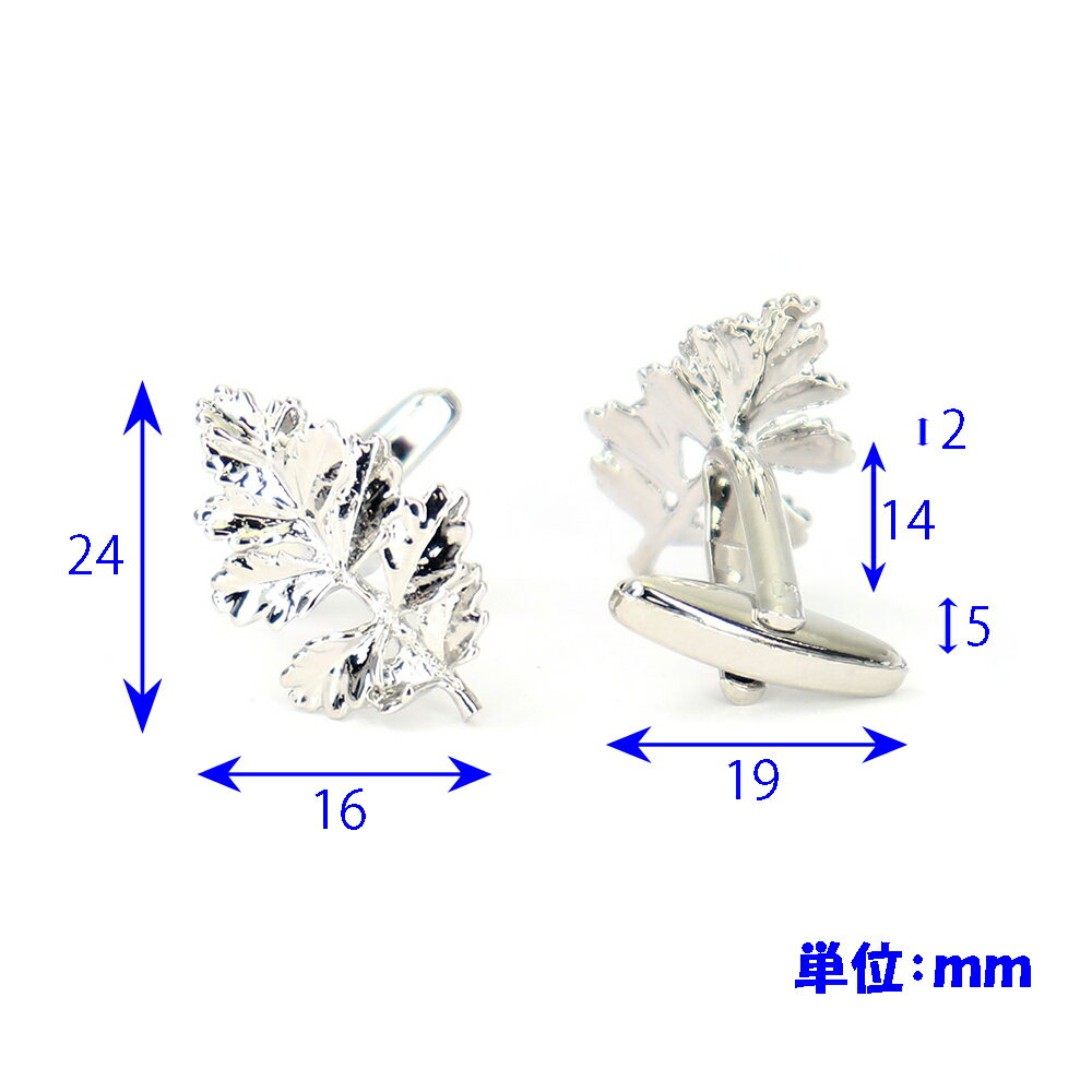 シルバー リーフ カフスボタン【男女 カフリングス 営業マン 個性 スーツ 人気 かわいい プレゼント ギフト カフス専門店】