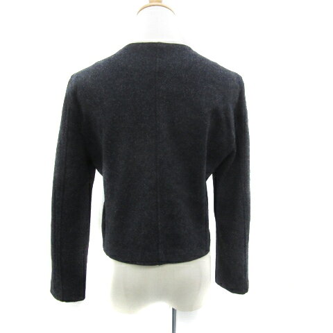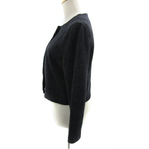 【中古】ププラ PUPULA ノーカラージャケット ショート丈 ウール 40 L チャコールブラック /YS1 レディース 【ベクトル 古着】 250520