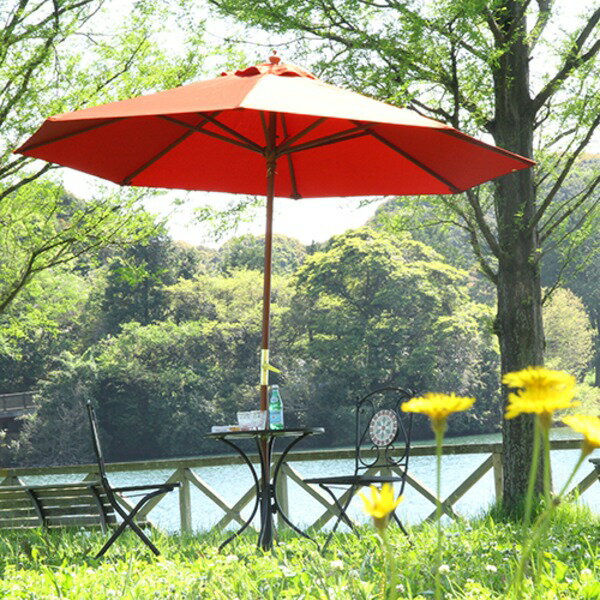 パラソル 約幅270cm エンジ ポリエステル 木製 屋外 組立品 ガーデン ベランダ テラス バルコニー ウッドデッキ【代引不可】