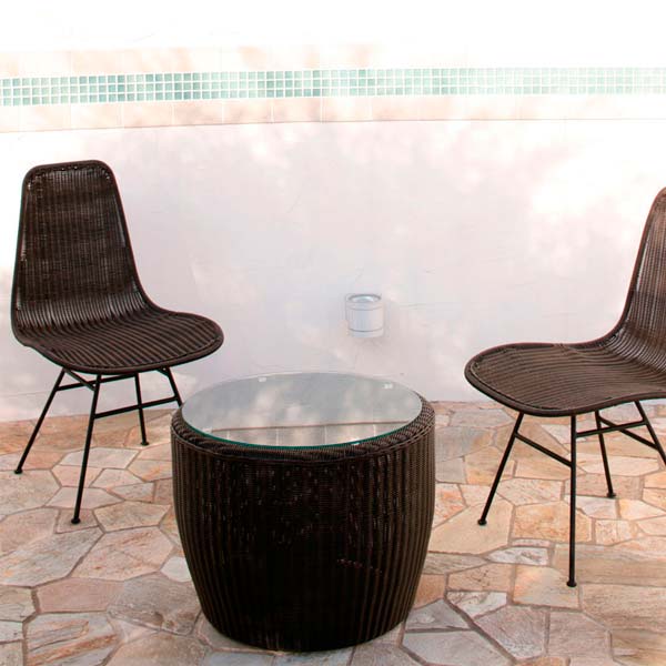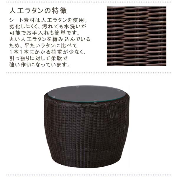 サイドテーブル 庭座 KFA-T001 完成品 幅56 奥行56 高さ42 人工ラタン アルミ材 ガラス天板 円形 ガーデンテーブル ガーデンファニチャー 送料込み