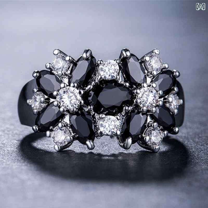指輪 男女兼用 グリーン ジルコニア ラインストーン フラワーモチーフ 欧米風 合金製 電気メッキ 幾何学模様 ファッション リング アクセサリー カジュアル オフィス 通勤 デイリーユース ジュエリー
