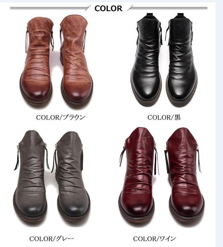 メンズ エンジニアブーツ ショートブーツ 両側ファスナー 靴 ドレープ ワークブーツ レザーブーツ バイク用 ビジネスシューズ カジュアル エンジニア おしゃれ イギリス風 紳士靴 歩きやすい 春秋冬 父の日ギフト 身長アップ カジュアルシューズ