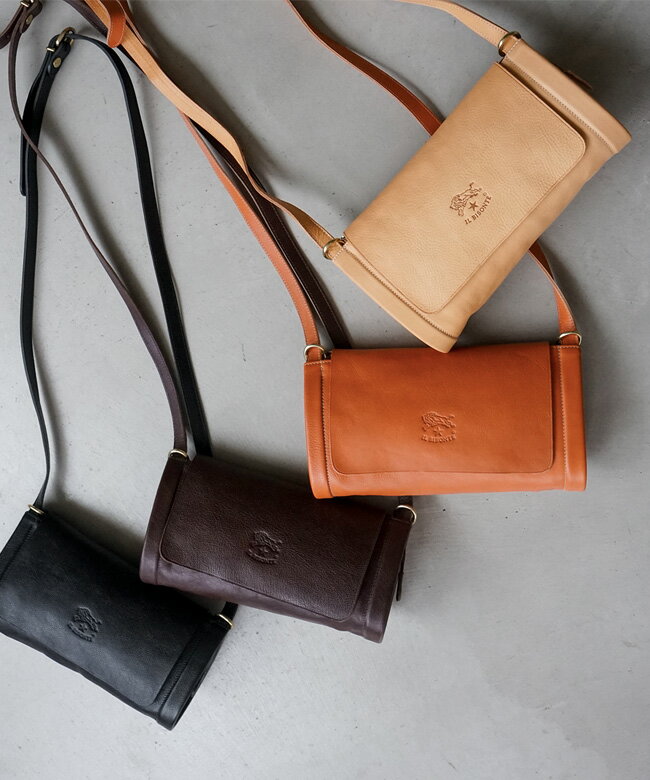 ◇【国内正規販売店】[411879] IL BISONTE(イルビゾンテ) フラップ レザーショルダーバッグ/クロスボディバッグ/ポシェット