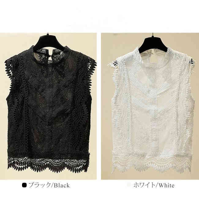 ハイネック ブラウス 総レース プチ ノースリーブレース ショルダーフリルレーストップス ブラウス