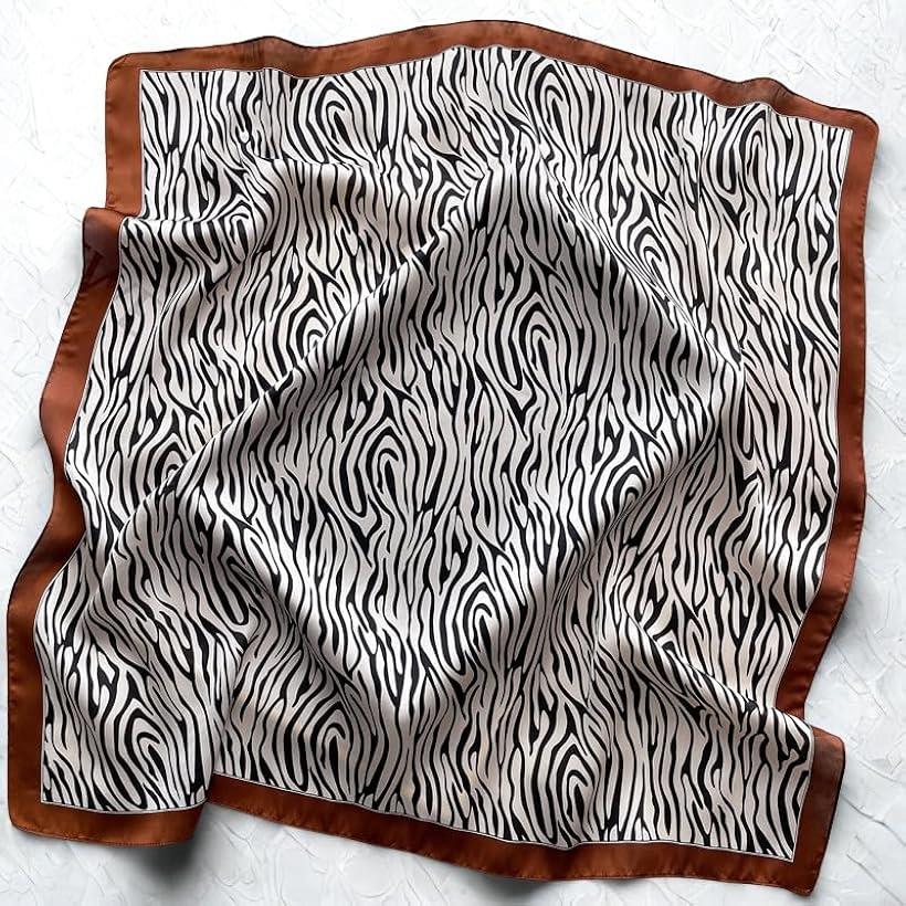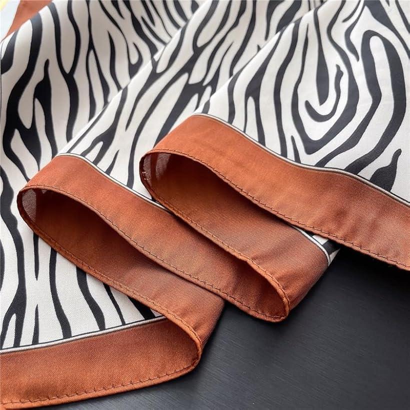 スカーフ シルク調 70cm正方形 プリント 上品カラー レディース 卒業式・プレゼント (ブラウン ゼブラ)