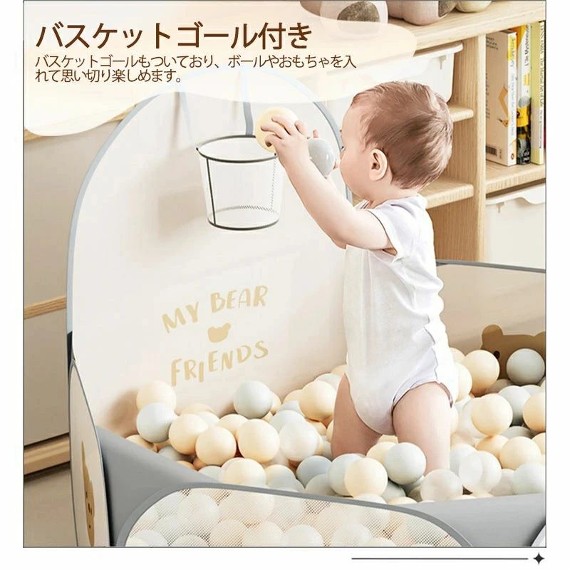 ボールプール 折りたたみ ベビーサークル メッシュ ボールハウス ボールプール ボール付き バスケットゴール付き 赤ちゃん ベビー 幼児 室内遊び 遊び場 おもちゃ プレイサークル 保育園 子どもの日