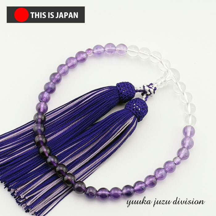 【送料無料】【日本製京念珠正規品】【数珠袋付】【本水晶】【紫水晶】【ローズアメジスト】グラデーション8mm【女性用】【数珠】【念珠】【★★★★★】