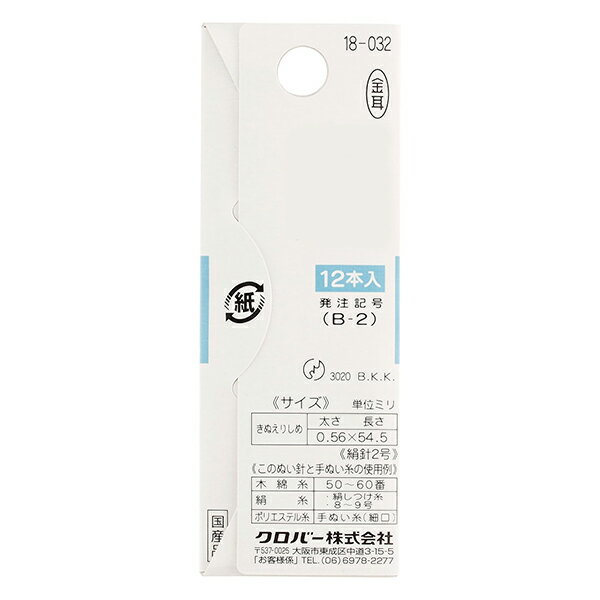 手縫い針 『ぬい針 絆 薄地用 長針2 18-032』 Clover クロバー