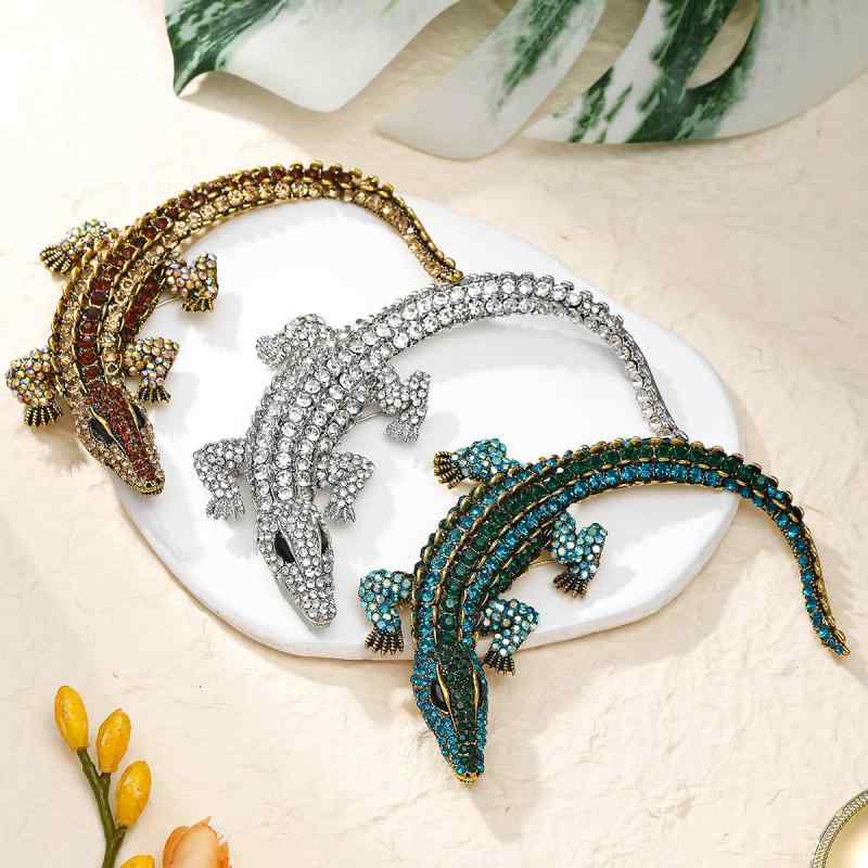 ブローチ レディース 欧米風 ワニ アニマル ...
