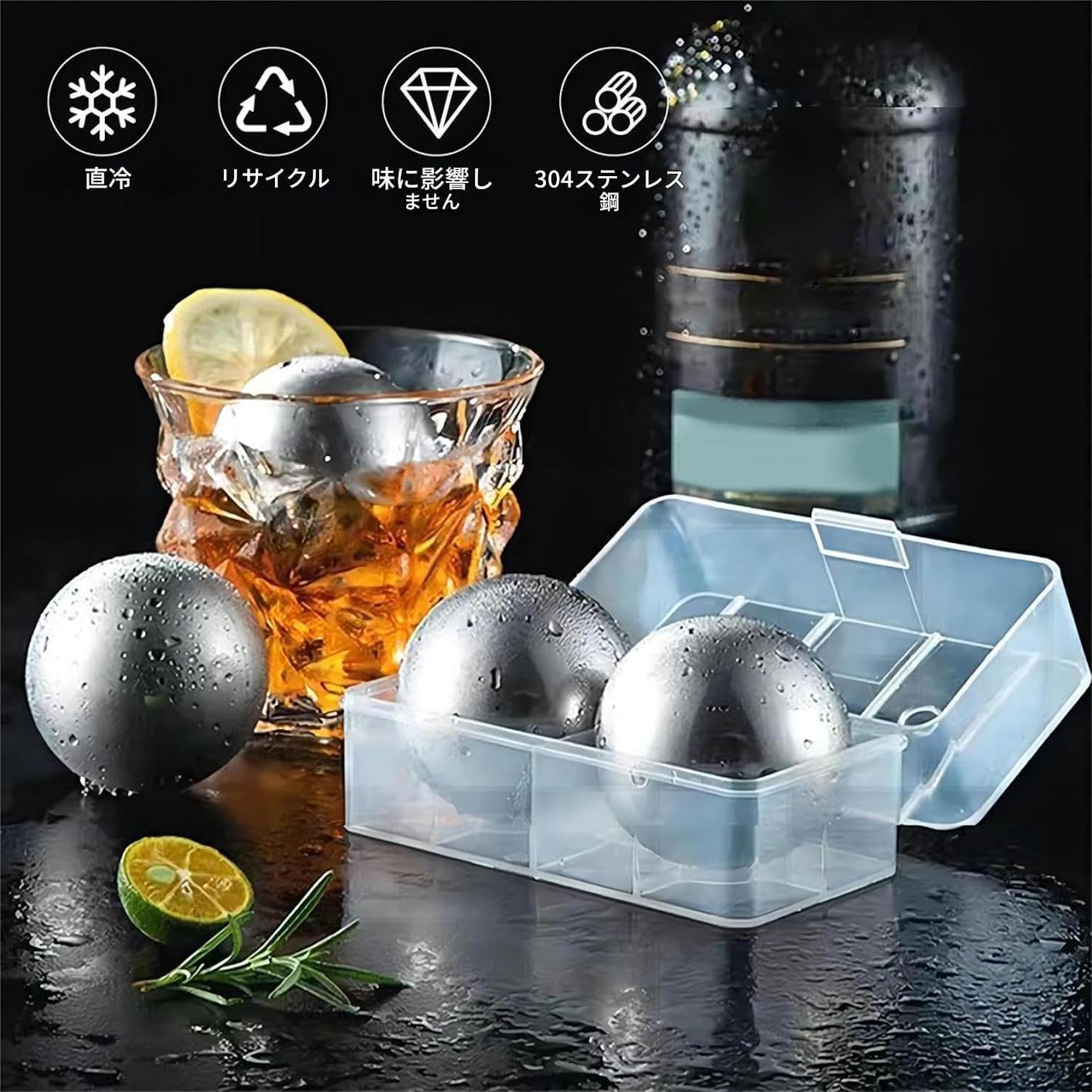 スチールアイスキューブ - 2個 55mm 再利用可...