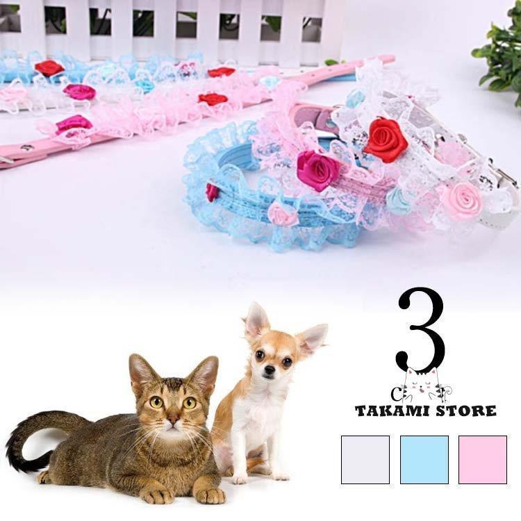 レース 首輪 犬用 ペット用品 花柄 犬の首輪 ...
