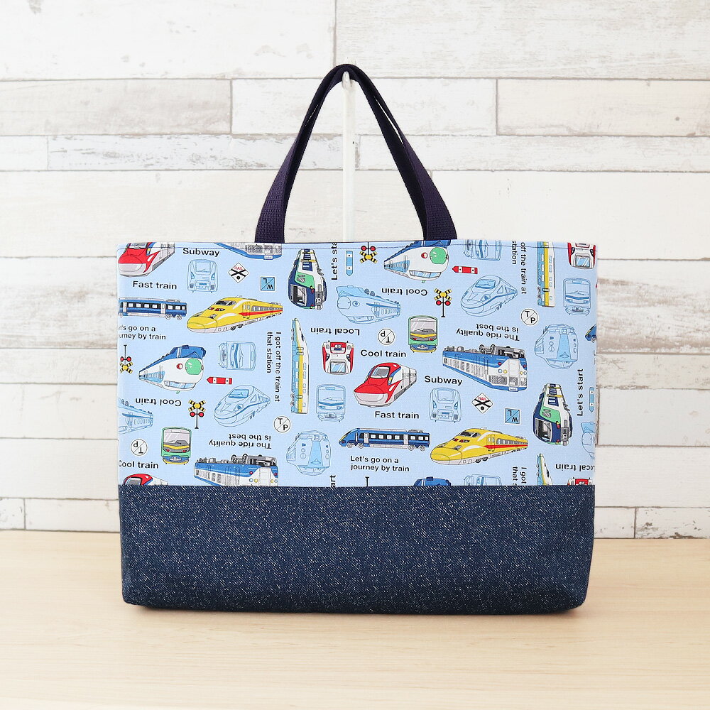 いろんな電車 ブルーデニム風 マチあり レッ...