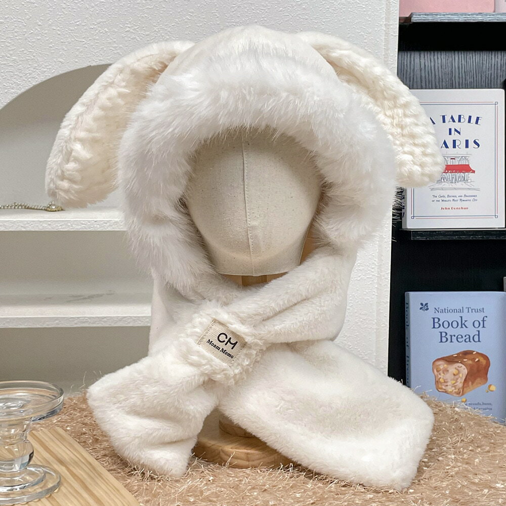 かわいいウサギの耳の毛の柔らかい帽子のマ...