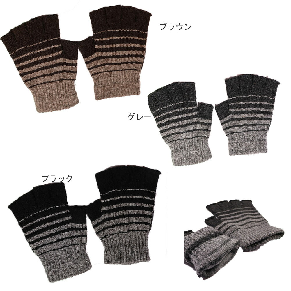 指なし ニット メンズ 手袋 2組セット ハーフ...