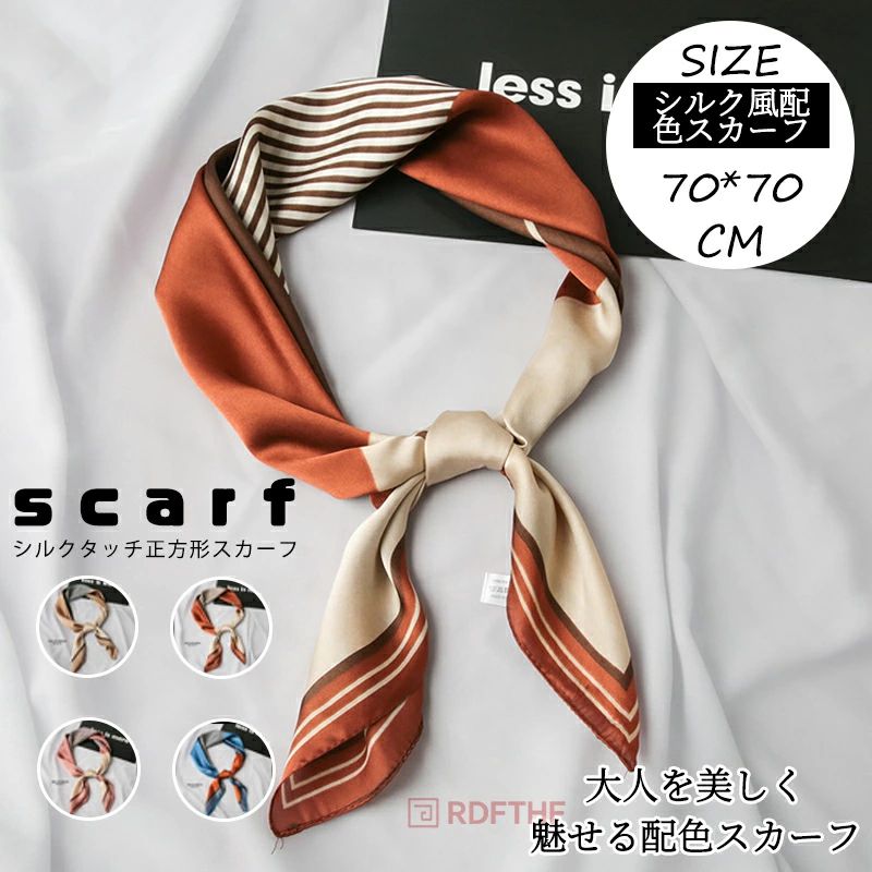 シルク風スカーフ 首巻き 配色バンダナ レデ...