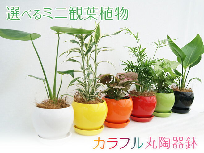 選べるミニ観葉植物4号カラフル丸陶器鉢|1鉢...