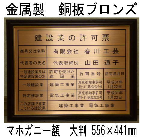 建設業の許可票 高級額 銅ブロンズ製 (高級...
